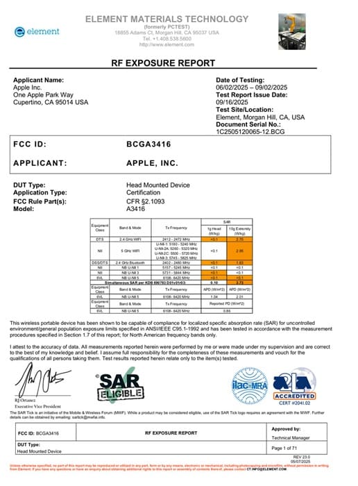 Según documentos de la Federal Communications Commission (FCC), la compañía ha registrado un dispositivo de tipo Head Mounted Device bajo el número de modelo A3416, lo que apunta directamente a un nuevo casco de realidad mixta.