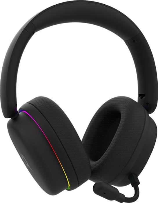 El conjunto pesa 297 g e incorpora almohadillas de espuma viscoelástica, diadema acolchada ajustable y estructura plegable, facilitando tanto el uso prolongado como el transporte. Las copas incluyen iluminación Static RGB, fija y sin efectos dinámicos.