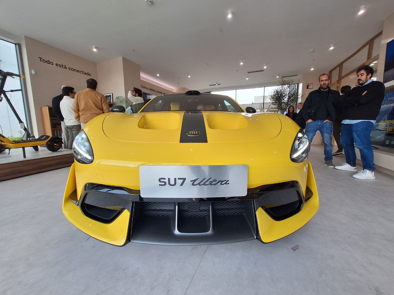 La marca nos reunió en la tienda Xiaomi Home del Paseo de la Castellana, en el complejo Caleido, el mismo lugar donde estos días está expuesta una unidad del SU7 Ultra. La diferencia es que, mientras el público solo puede rodearlo y tocar la carrocería, en este evento para prensa sí pudimos acceder al interior y examinarlo con calma.