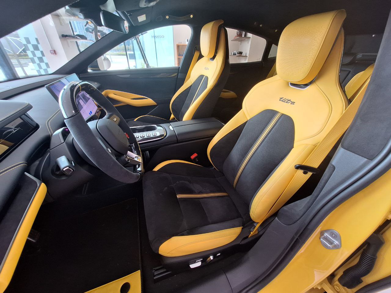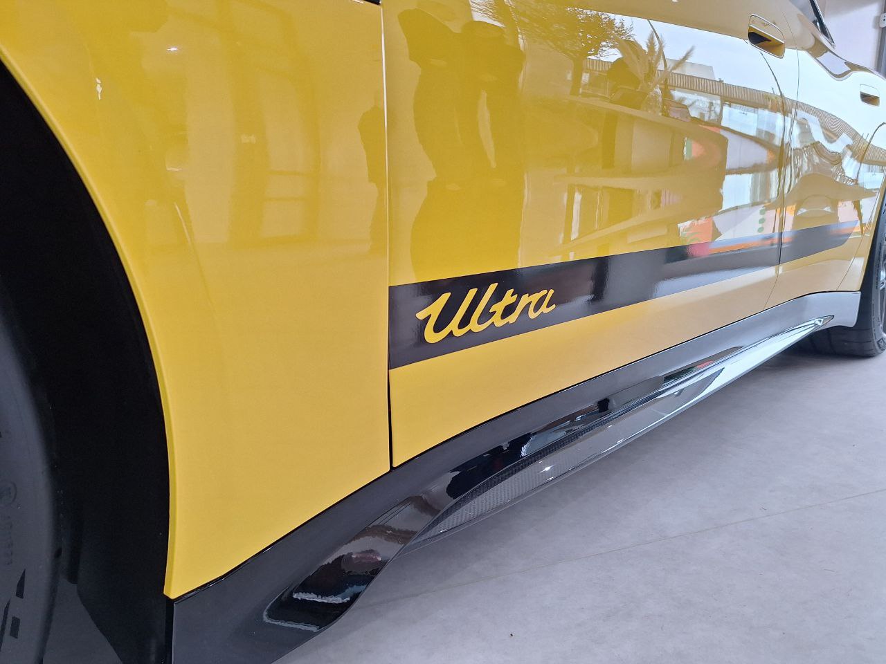 Desde fuera, el coche impone. Es la versión Ultra, la más radical de todas, con más de 1.500 CV y un 0 a 100 km/h de 1,98 segundos. En persona se aprecian mejor la silueta aerodinámica, el alerón de carbono, las llantas de 21 pulgadas y los frenos enormes que parecen discos de competición.