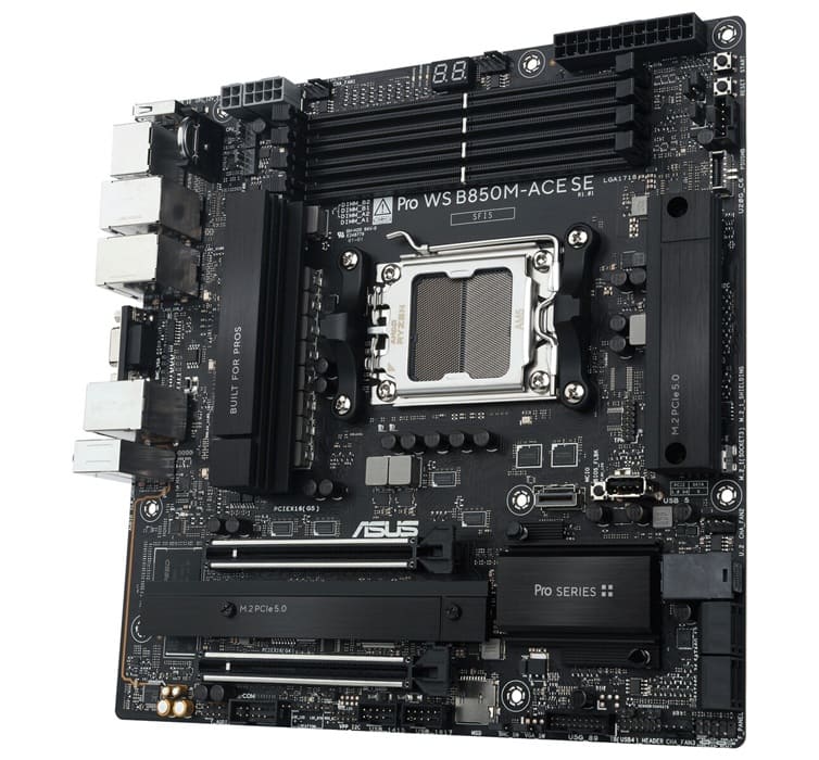 ASUS amplía su catálogo profesional con la nueva Pro WS B850M-ACE SE, una placa base Socket AM5 en formato micro-ATX que adopta un diseño claramente inspirado en el mundo servidor, pero orientado a workstations, servidores domésticos y pequeñas empresas con cargas de trabajo intensivas en almacenamiento.