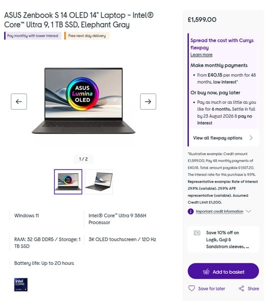 Aunque ASUS indicó en un primer momento que Europa recibiría configuraciones equivalentes a las estadounidenses con Intel Core Ultra X Series 3, los listados publicados por la marca y el distribuidor Currys confirman que el modelo vendido en Reino Unido integra el Intel Core Ultra 9 386H, en lugar de los previstos Core Ultra X7 368H y Core Ultra X9 388H.