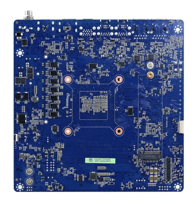Uno de los aspectos más llamativos de la serie EMX-PTLP es el nivel de expansión concentrado en un formato Thin Mini-ITX. La placa incluye un slot PCIe Gen 5 para tarjetas de expansión, algo poco común en este tamaño, y expone varias interfaces M.2 con diferentes claves: