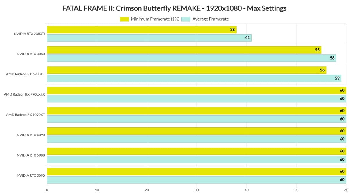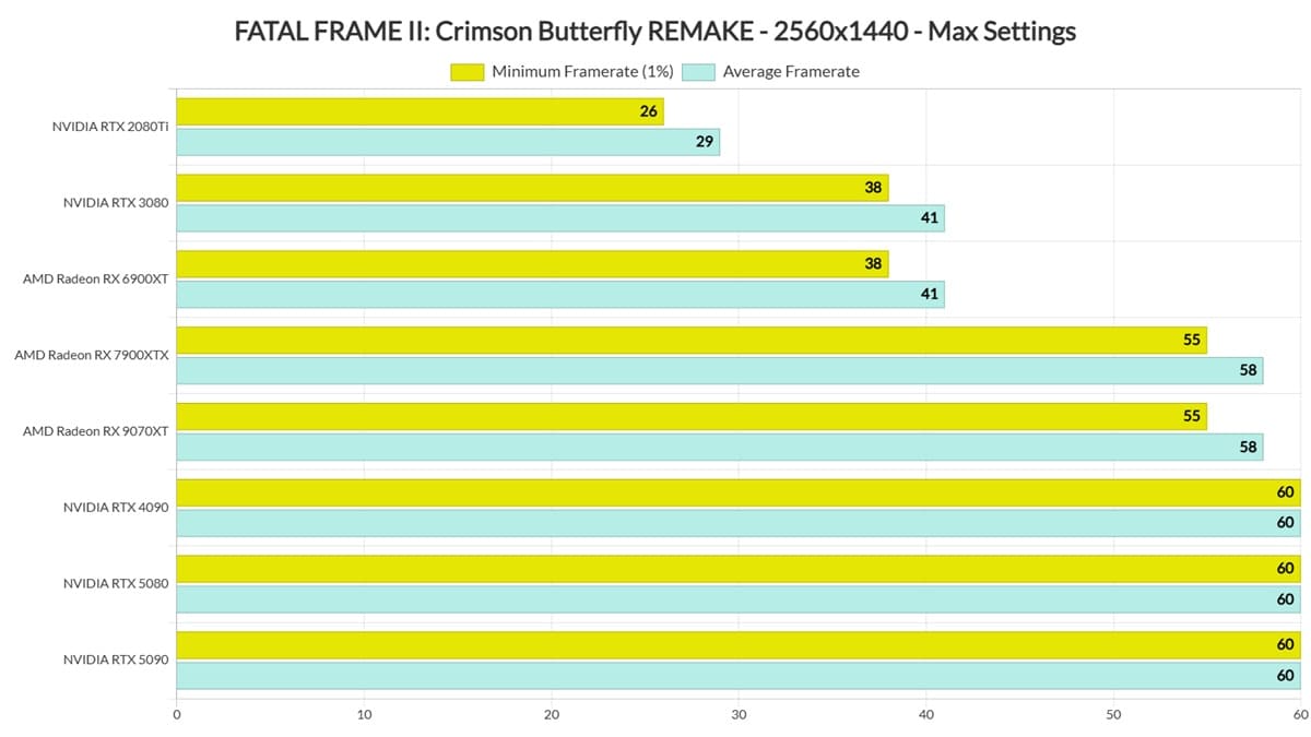 Benchmarks de Fatal Frame II Crimson Butterfly Remake en PC revelan un rendimiento exigente donde solo la RTX 5090 mantiene 60 FPS en 4K nativo