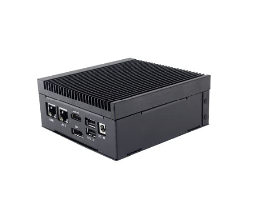 A nivel de conectividad, el sistema ofrece salida de vídeo triple 4K mediante HDMI, DisplayPort y USB-C, además de doble red Ethernet de 2,5 GbE, cubriendo escenarios como cartelería digital, retail inteligente, monitorización ambiental o sistemas de control ligero. El soporte amplio de sistemas operativos facilita su integración en plataformas embebidas heterogéneas, un punto clave en proyectos IoT a largo plazo.