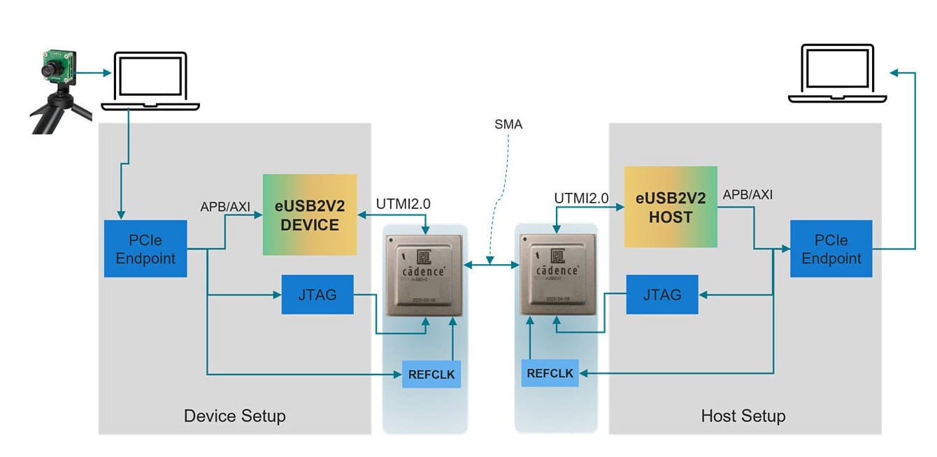 La propuesta de Cadence se apoya en el estándar eUSB2V2, ofreciendo hasta 4,8 Gbit/s a bajo voltaje, con tasas de datos simétricas y asimétricas y una integridad de señal optimizada para SoCs modernos. El objetivo es claro: sostener cargas de trabajo de IA, cámaras de alta resolución y altas tasas de fotogramas sin penalizar eficiencia energética.