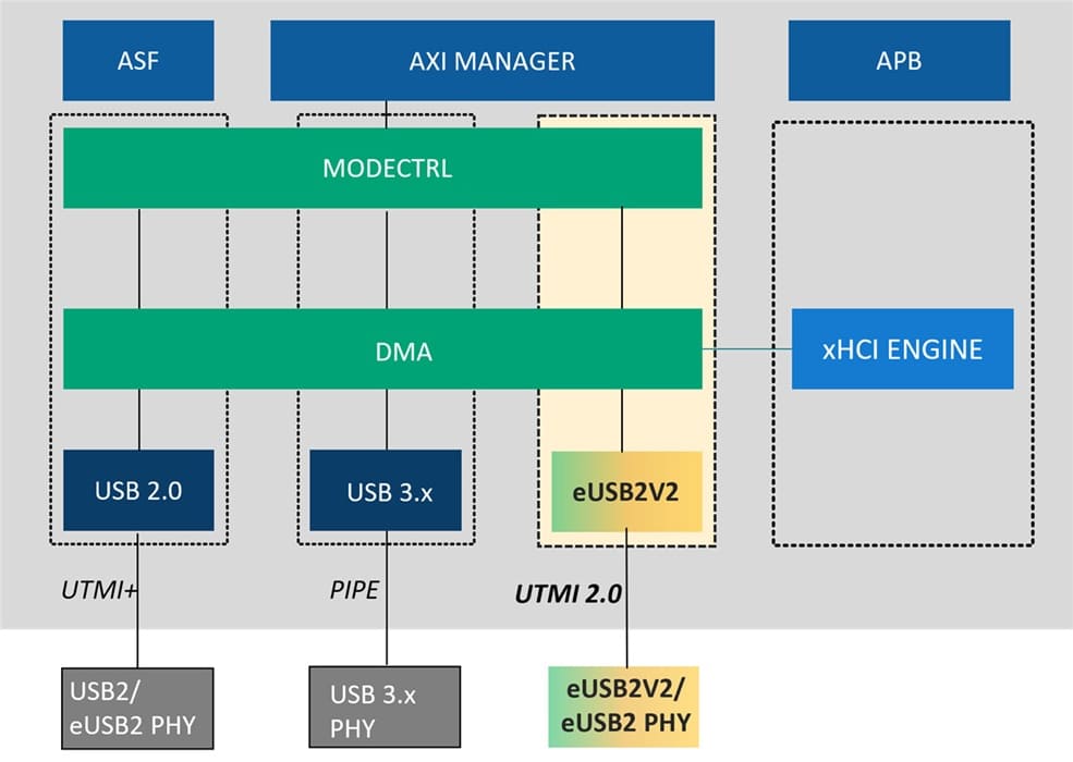 La compañía destaca que su IP eUSB2V2 está pensada para reemplazar USB 2.0 heredado o eUSB2V1, mejorando el equilibrio PPA (rendimiento, potencia y área) y simplificando la integración en diseños complejos. Además, es compatible con UTMI 2.0 y puede convivir con USB 3.2 y USB 2.0, reduciendo riesgos en subsistemas USB completos.