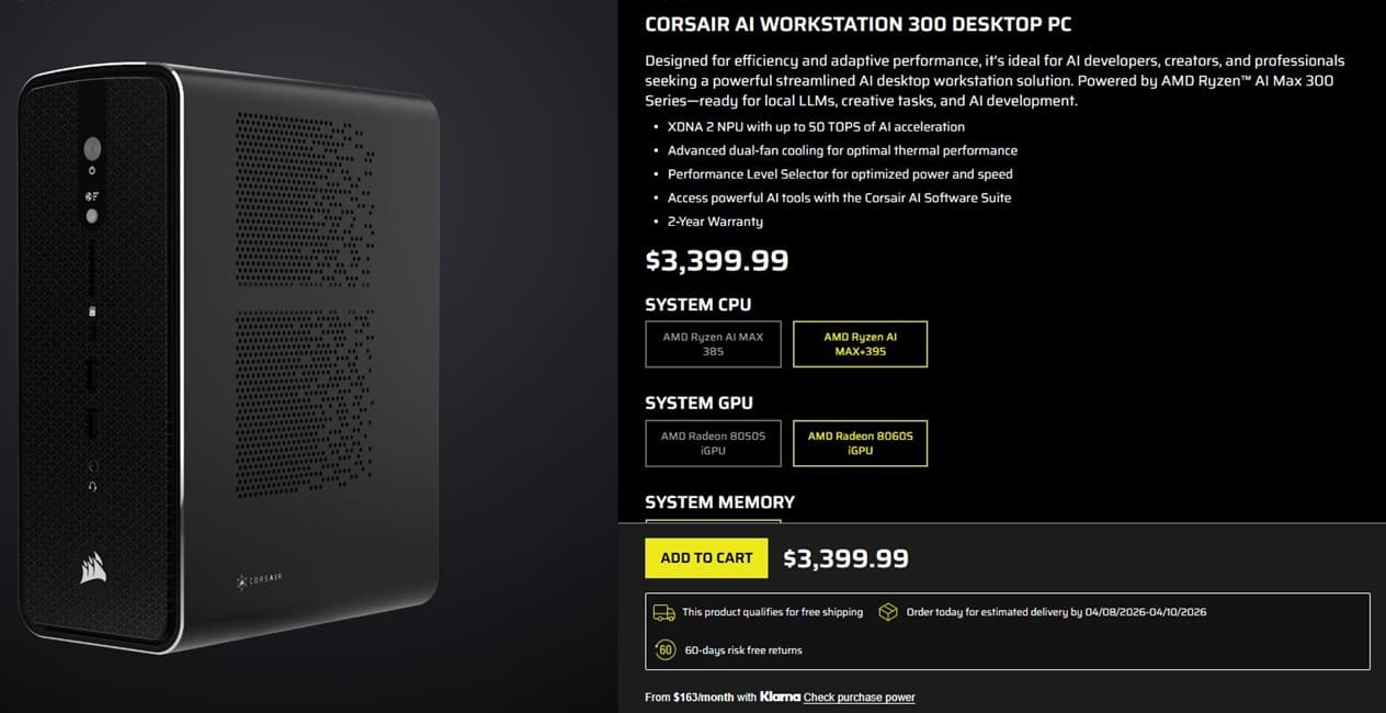 El mercado de hardware sigue encareciéndose y ya afecta de lleno a equipos completos. Corsair ha aplicado una subida drástica en su AI Workstation 300, cuyo modelo más avanzado pasa de 2.299$ (~1.986€) a 3.399$ (~2.936€). Este incremento refleja cómo la crisis de memoria DRAM y el encarecimiento de los SSD están impactando directamente en el precio final de sistemas completos.
