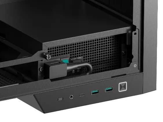 A nivel estético, el CL6600 apuesta por un perfil apilado, un frontal con acento de madera, soporte integrado para auriculares y una presencia claramente orientada a equipos de exhibición. No es un chasis discreto, sino uno diseñado para formar parte visible del espacio de trabajo o juego.