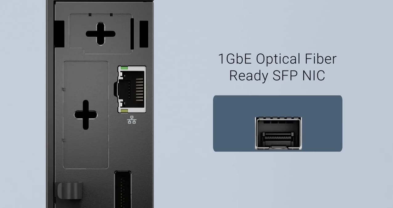 Además, el sistema puede configurarse con hasta siete módulos de expansión de puertos, incluyendo opciones como fibra óptica de 1 GbE. Esta modularidad permite adaptar el equipo a distintos escenarios profesionales sin necesidad de añadir periféricos externos o soluciones adicionales.