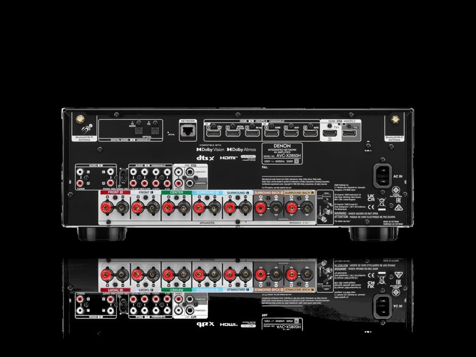 El Denon AVC-X2850H admite los principales formatos de audio 3D como Dolby Atmos y DTS:X, pudiendo configurarse como un sistema 5.2.2. La marca asegura una reproducción clara y dinámica gracias a sus amplificadores de alta corriente, capaces de manejar una amplia gama de altavoces sin distorsión.
