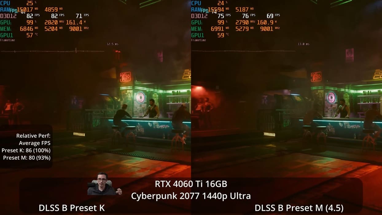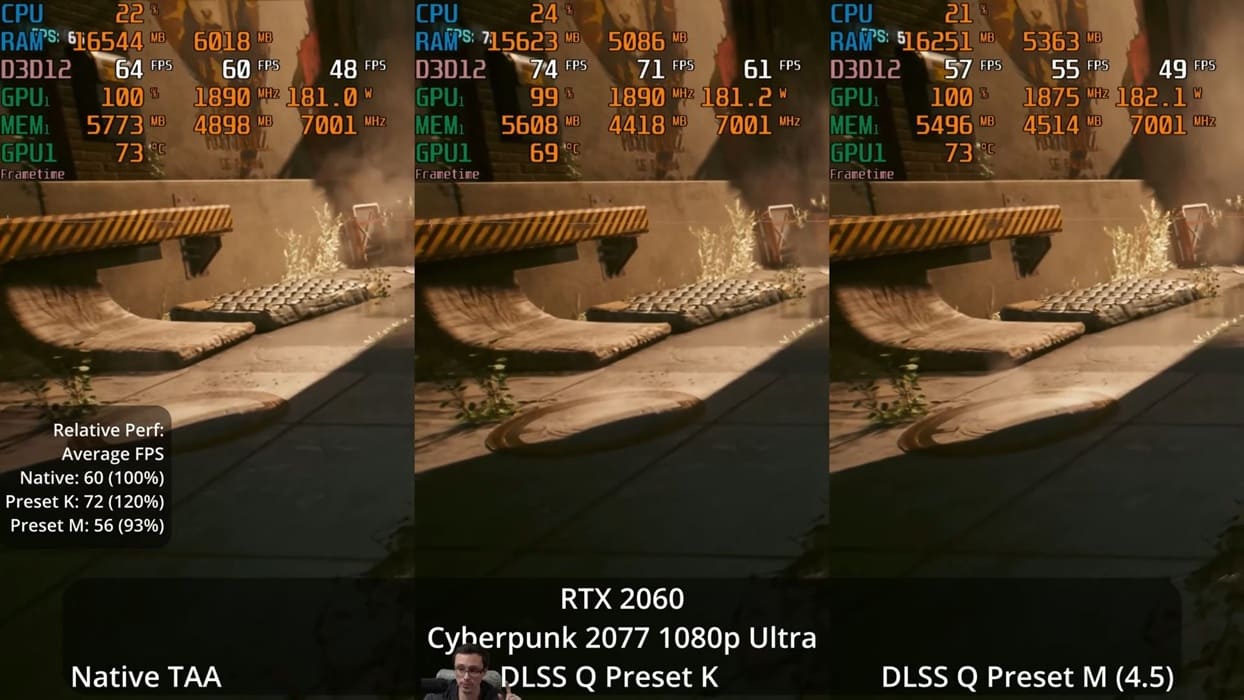 Esto explica por qué tarjetas como la RTX 2060, con 6 GB de VRAM, se ven especialmente afectadas. En Cyberpunk 2077, a 1080p, ajustes Ultra y DLSS Quality, el Preset M llega a rendir un 7% peor que el TAA nativo, algo que invalida por completo su uso en este tipo de GPU.