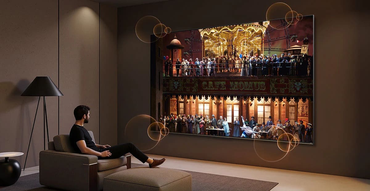 El televisor es compatible con Dolby Atmos e incorpora funciones como ecualización asistida por IA, refuerzo de graves y una escena sonora diseñada para crear audio envolvente vertical, sin necesidad de añadir un sistema externo desde el primer momento.