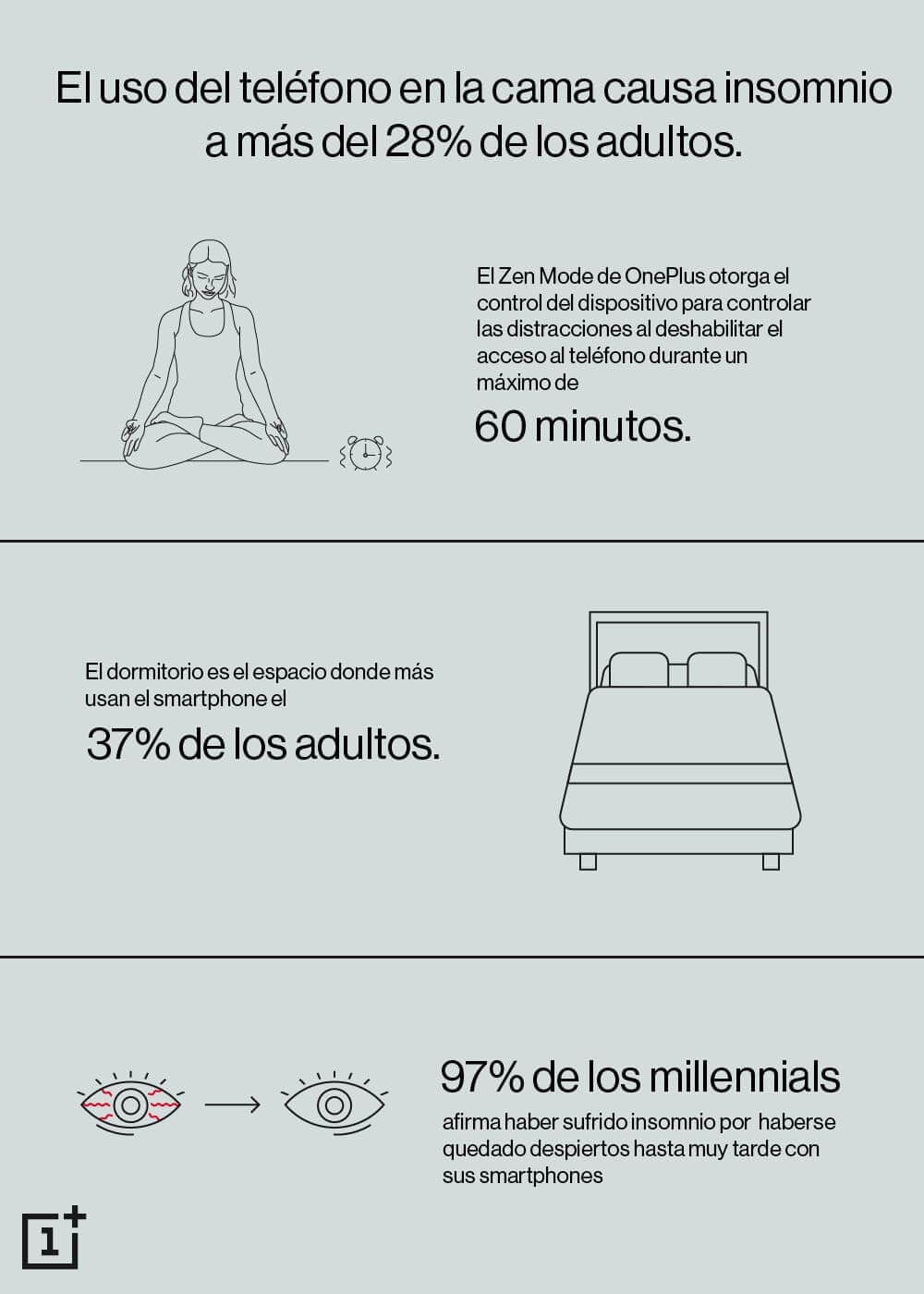 «La tecnología debería existir para mejorar la vida de las personas, no para interponerse en ella. Con respecto al sueño, la innovación tecnológica debe ofrecer distintas opciones para que los usuarios puedan dormir bien y, por esta razón, desde OnePlus queremos ayudar a las personas a que puedan centrarse en lo que realmente les importa. Este deseo nos ha llevado a seguir invirtiendo en tecnología líder de pantalla para ofrecer un dispositivo de 90 Hz con funciones clave como el panel E3 que reduce drásticamente la luz azul en un 42%, el modo oscuro que garantiza un visionado más cómodo en condiciones de poca luz, y el Modo Zen que otorga el control del dispositivo a su usuario para controlar las distracciones al deshabilitar el acceso al teléfono durante un máximo de 60 minutos», explica David Sanmartín, responsable de OnePlus en España.
