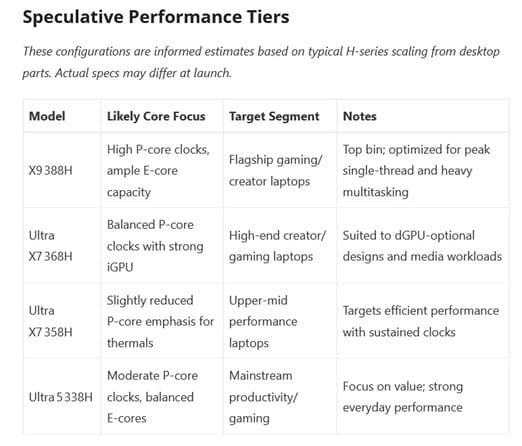 Aunque inicialmente se vinculaban estos modelos a la arquitectura Panther Lake, las especificaciones encajan más con la hoja de ruta de Nova Lake-H prevista para 2026. Esta gama busca altos TDP y rendimiento para portátiles gaming y estaciones de trabajo, mientras que Panther Lake se enfocará en la eficiencia para ultrabooks y equipos ligeros.