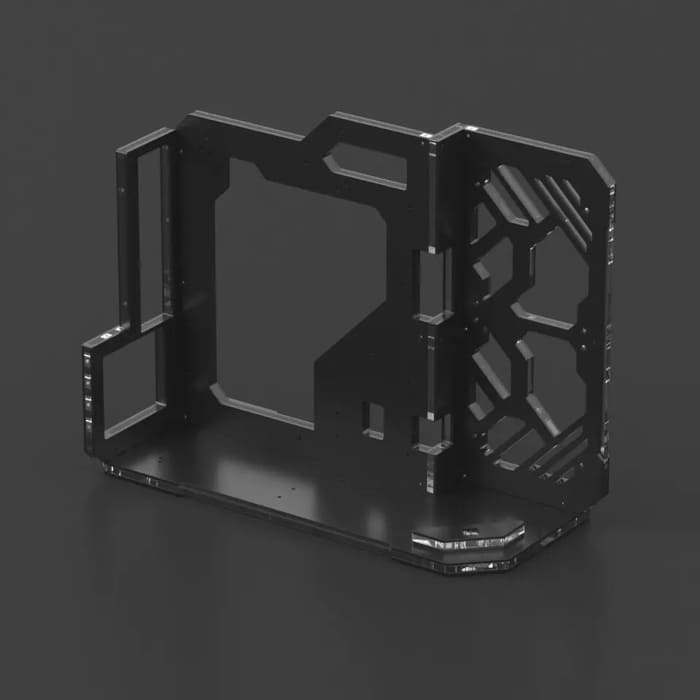 El diseño gira en torno a una placa acrílica que actúa como bandeja de la placa base, combinada con una base inferior que concentra los puntos de anclaje para fuente de alimentación, almacenamiento y refrigeración. Esta aproximación busca simplificar el montaje y facilitar el acceso a los componentes, situando al Exo 1 en una categoría a medio camino entre vitrina compacta y banco de pruebas doméstico.