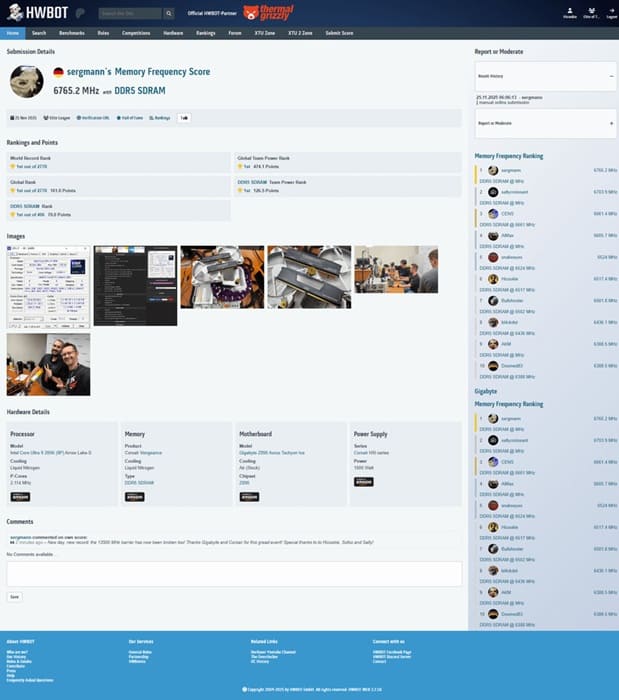 Gigabyte bate el récord mundial de memoria DDR5 con 13 530 MT/s en la Z890 AORUS TACHYON ICE