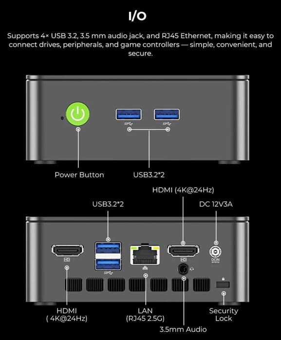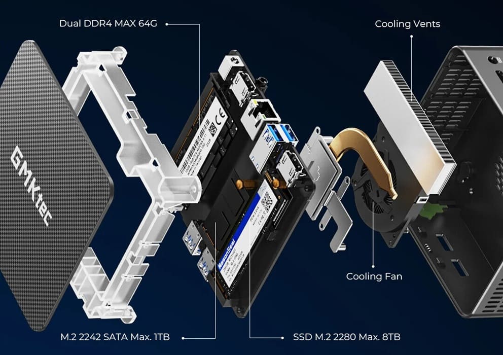 GMKtec comercializa el sistema tanto en formato barebone como en configuraciones cerradas. Los modelos preconfigurados alcanzan hasta 16 GB de RAM y 512 GB SSD, manteniendo margen para ampliaciones posteriores por parte del usuario.
