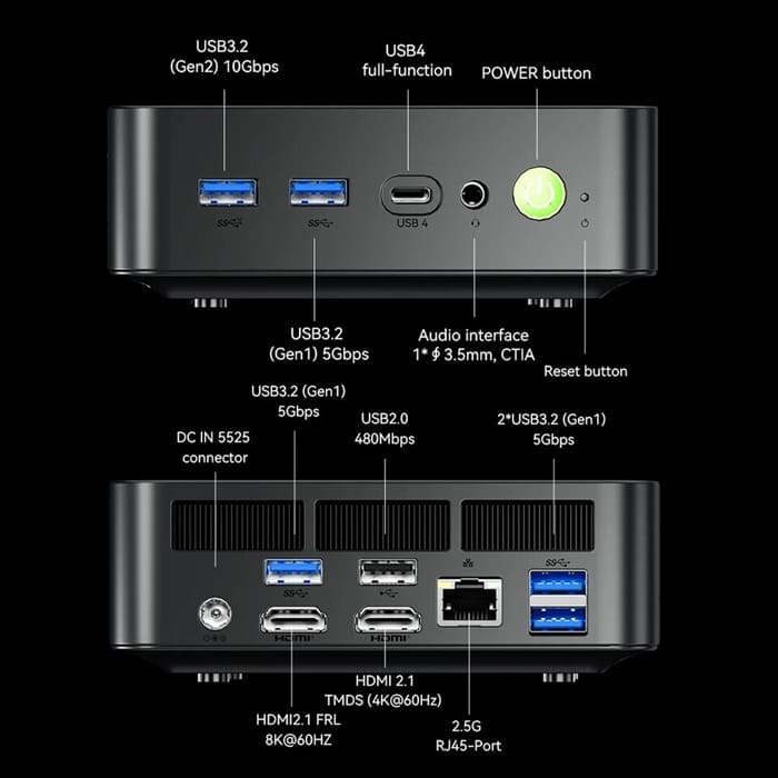 El equipo mide 127,5 × 127 × 44,5 mm y pesa apenas 460 g, alimentado por un adaptador de 100W, lo que refuerza su enfoque como solución compacta. Parte desde 559,99$ (~486€), lo que lo sitúa en una posición competitiva dentro del segmento de mini PCs con capacidades de IA integradas.