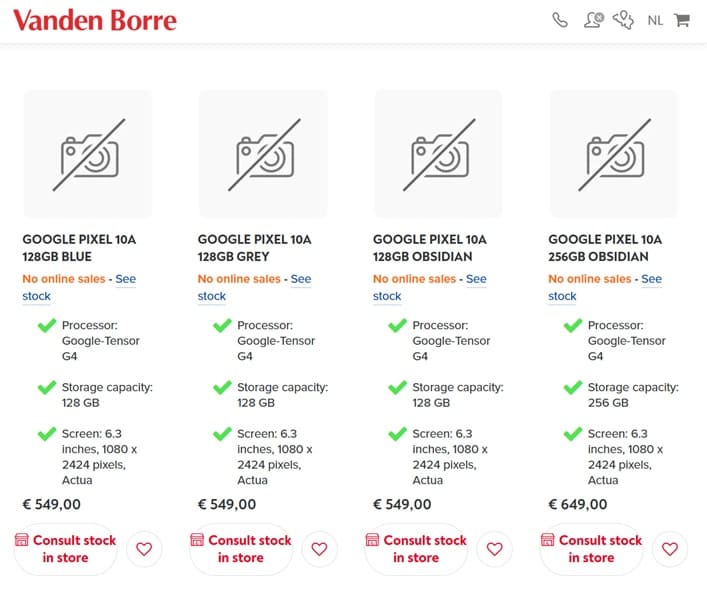 El Google Pixel 10a se presentará oficialmente hoy mismo, pero un minorista europeo ha adelantado buena parte de sus especificaciones y precios. La cadena belga Vanden Borre ha publicado información anticipada del nuevo modelo, que sustituirá al Google Pixel 9a, revelando detalles clave sobre su pantalla, procesador y configuraciones de almacenamiento.
