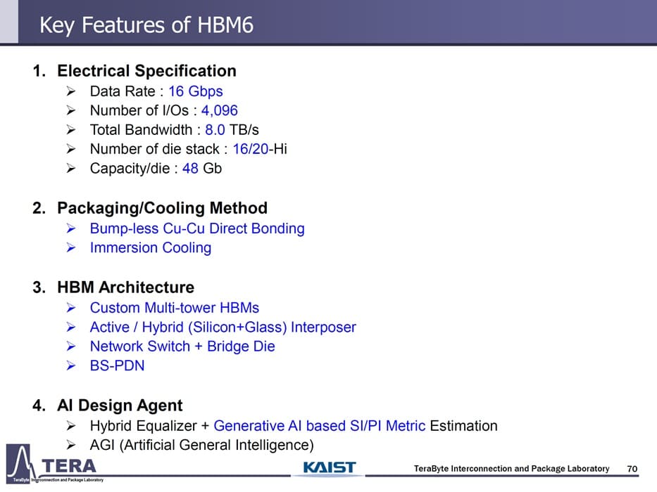 En términos energéticos, cada módulo podría situarse en torno a 100W por stack, integrando encapsulado Microbump (MR-MUF) y soluciones de refrigeración por inmersión. Además, se contemplan innovaciones como Base Die personalizado con 3D NMC-HBM, memoria cache apilada, integración de LPDDR + CXL en el Base Die y condensadores dedicados para desacoplo eléctrico.