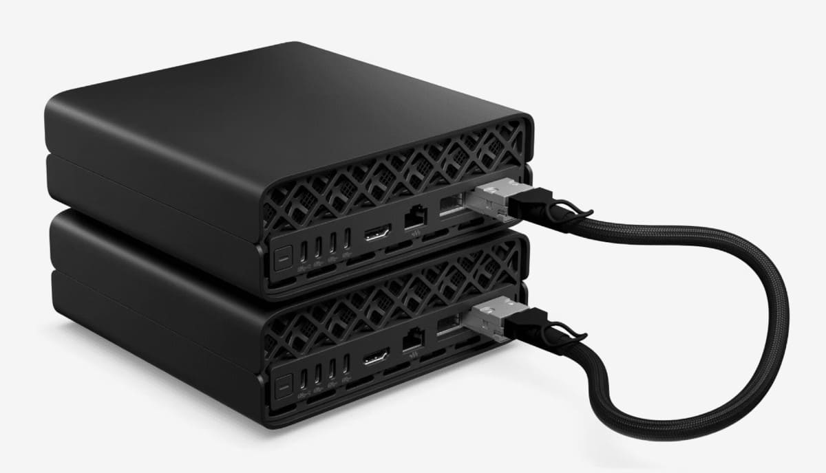 El subsistema gráfico accede a 128 GB de memoria LPDDR5X con un ancho de banda de 273 GB/s, lo que mejora la ejecución de modelos complejos de aprendizaje profundo, simulación o análisis de datos. Además, el sistema puede enlazarse con otra unidad mediante un puerto NVIDIA ConnectX, alcanzando una velocidad de interconexión de 200 Gbit/s, superior incluso a Thunderbolt 5, lo que facilita configuraciones de cómputo distribuido o estaciones IA en clúster.