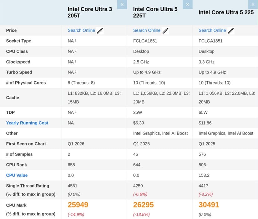 El procesador Intel Core Ultra 3 205T ha aparecido en los benchmarks de PassMark, mostrando un comportamiento interesante dentro de la gama de entrada basada en Arrow Lake-S. A pesar de su configuración más contenida, este chip logra destacar en pruebas de rendimiento mononúcleo, situándose por delante de modelos superiores en este apartado concreto.