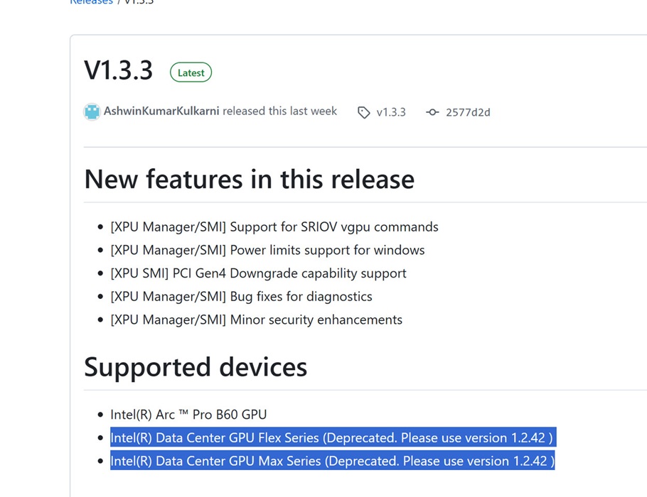 Intel ha comenzado un proceso gradual de retirada de soporte para sus GPU de centro de datos Ponte Vecchio y Arctic Sound, marcando el final de una etapa en su estrategia de aceleradores de alto rendimiento. Esta información proviene del changelog de la herramienta Intel XPU Manager, cuya versión 1.3.3 depreca oficialmente ambas series. Los usuarios de estos productos deben permanecer en la versión anterior 1.2.42 si desean conservar todas las funciones.