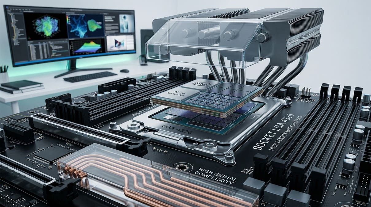 El uso de un Socket LGA 4326 resulta especialmente relevante por sus dimensiones, cercanas a los 37,5 x 56,5 mm, lo que lo sitúa muy por encima de otras plataformas actuales dentro del catálogo de Intel. Este tamaño no es casual, sino que refleja necesidades técnicas específicas ligadas a un diseño más ambicioso.