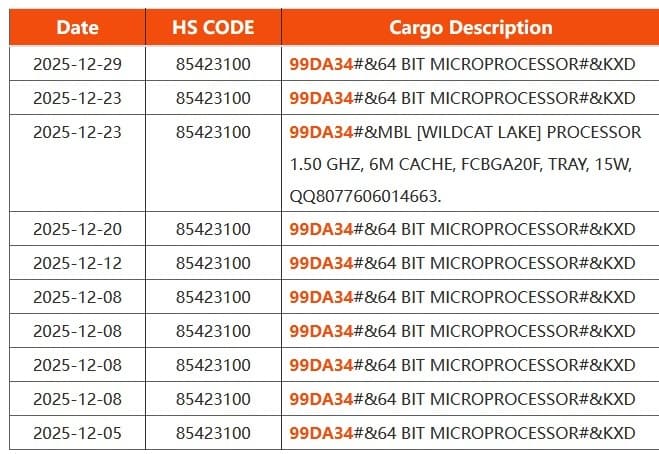 La próxima generación de procesadores Intel Wildcat Lake ha aparecido en un registro de envío NBD, una fuente que suele revelar información preliminar sobre chips antes de su presentación oficial. Los datos filtrados dejan ver algunas especificaciones clave de esta familia de CPUs orientadas a equipos de bajo consumo, como portátiles ligeros y mini PCs, donde el objetivo principal es ofrecer eficiencia energética con capacidades de IA integradas.