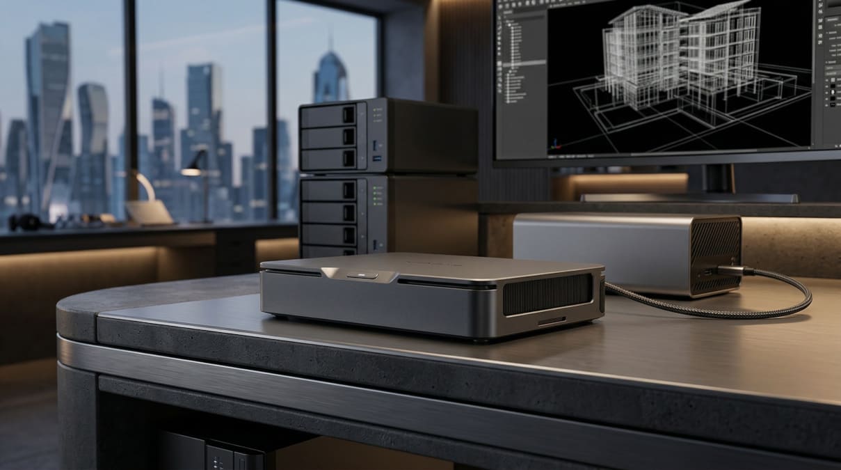 El núcleo del sistema, basado en la tecnología Intel 18A, permite un despliegue de potencia eficiente en un chasis de apenas 0,3 litros de volumen. La integración de la NPU de cuarta generación dentro del encapsulado del procesador optimiza las tareas de inferencia local, convirtiendo a este mini PC en una estación de trabajo móvil capaz de gestionar cargas de trabajo de IA sin depender exclusivamente de la potencia bruta de la tarjeta gráfica externa.