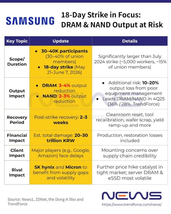 La huelga de Samsung amenaza la producción de DRAM y NAND, agravando la crisis de memoria en la IA