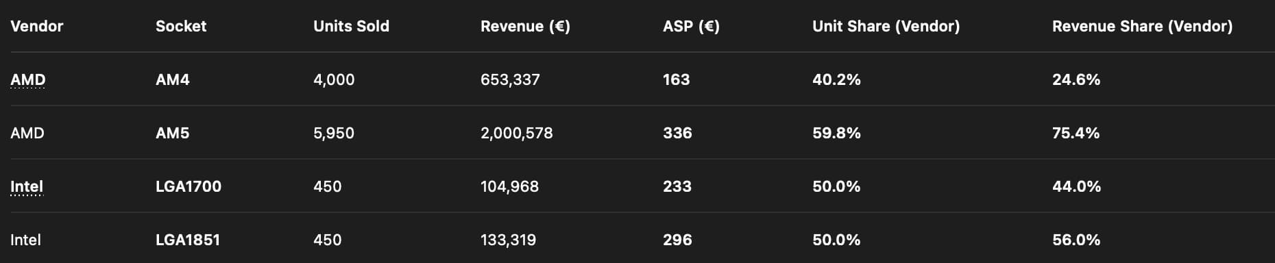 Los datos reflejan además que los procesadores compatibles con AM4 representan cerca del 40% de las ventas totales de CPUs AMD en Amazon DE, una cifra sorprendente teniendo en cuenta que el mercado lleva tiempo orientado hacia AM5. AMD ya reconoció en CES 2026 que está trabajando para reintroducir generaciones anteriores en mayor volumen, en parte como respuesta a la volatilidad del mercado y a los problemas de suministro y precios de la DDR5.