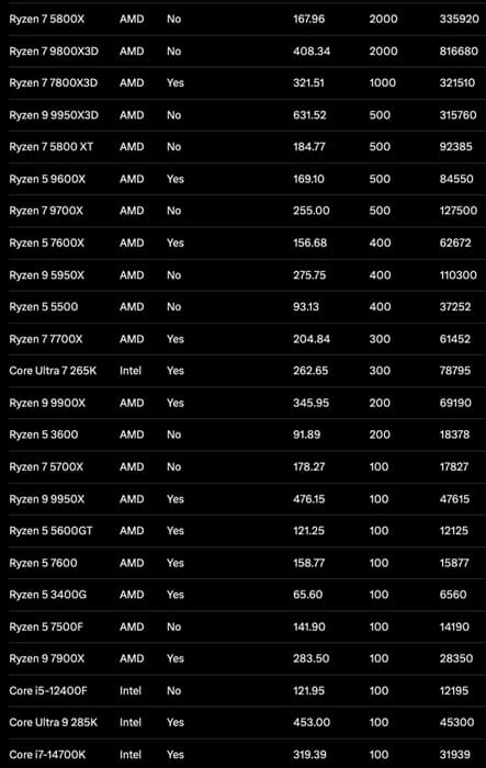 El principal motivo detrás de este fenómeno está en el coste total de montar un PC. Mientras que el Ryzen 7 5800X se ha vendido con un precio medio cercano a 168€, el Ryzen 7 9800X3D supera con holgura los 400€, situándose como un modelo claramente premium.