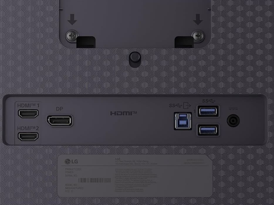 El LG UltraGear OLED 27GX704A también muestra recortes en conectividad frente a su hermano mayor, ya que no incluye puerto USB-C. En su lugar, encontramos DisplayPort 1.4, HDMI 2.1, USB Type-B y dos USB Type-A.