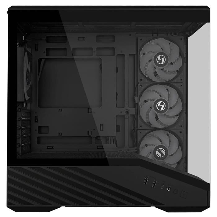 A nivel estético, la V100 MINI apuesta por un diseño panorámico de 270°, gracias a sus paneles de cristal templado en el frontal y el lateral. La ausencia de pilar frontal permite una visión limpia del interior, pensada para exhibir componentes y sistemas de iluminación.
