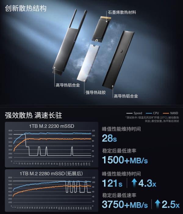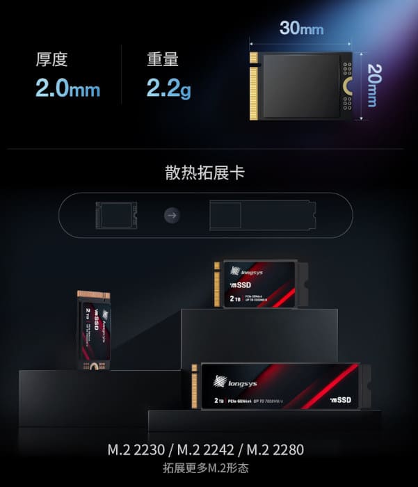 El nuevo Longsys mSSD admite memorias NAND TLC y QLC, con capacidades que van desde 512 GB hasta 4 TB. Además, cuenta con un disipador modular desmontable que permite adaptarlo fácilmente a distintos formatos M.2 2230, 2242 o 2280, ofreciendo compatibilidad con portátiles ultracompactos, mini-PCs y dispositivos embebidos.