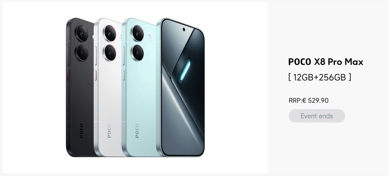 - POCO X8 Pro Max (12 GB | 256 GB): 529€