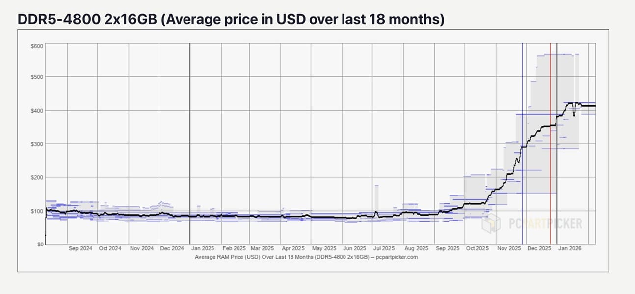 A simple vista, el mercado de la memoria RAM parece estar entrando en una fase de calma. Al analizar la evolución reciente de precios en agregadores como PCPartPicker, se aprecia que los módulos DDR4 y DDR5 han comenzado a aplanar sus curvas, dejando atrás los picos más agresivos de las últimas semanas. Sin embargo, esta aparente estabilidad no es una señal positiva, sino un ajuste puntual dentro de un contexto mucho más tenso.
