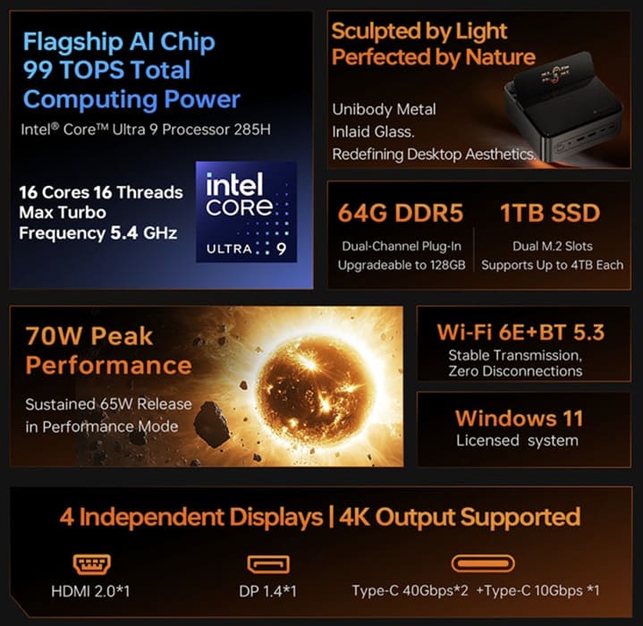 Fuera de China, esa opción intermedia no está disponible. Minixpc solo comercializa el Machenike GTS con Core Ultra 9 285H, lo que limita el atractivo del equipo para quienes buscan un mini PC Arrow Lake-H más equilibrado en precio.