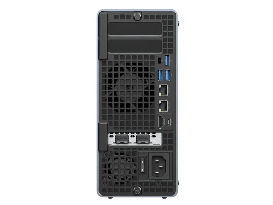 En almacenamiento interno, el sistema ofrece cuatro ranuras M.2 2280, repartidas entre PCIe 4.0 y PCIe 3.0, con dos de ellas integradas en la tarjeta de red de 25 GbE. Esta arquitectura permite configuraciones NVMe de alta capacidad y topologías de almacenamiento avanzadas en un volumen muy contenido.