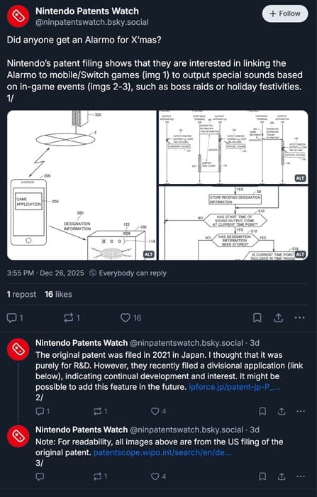 Según la traducción del texto de la patente, los relojes tradicionales reproducen sonidos basados en rutinas internas almacenadas en el propio dispositivo. La propuesta de Nintendo va más allá: conectar Alarmo con otros componentes para generar avisos dinámicos en función de lo que ocurra en tiempo real en sistemas externos.