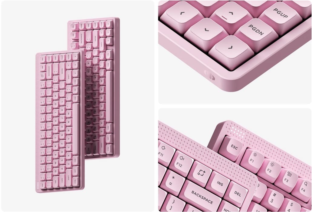 El teclado está disponible en acabados Light Pink e Ink Grey, con un peso de 829 g en la versión completa y 659 g en la de bajo perfil. Esta última reduce el peso sacrificando 1.000 mAh de batería (de 4.000 mAh a 3.000 mAh). Aun así, ambas versiones prometen hasta 1.000 horas de autonomía, una cifra destacable dentro de su rango.