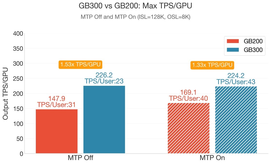 Según LMSYS, el sistema GB300 NVL72 mantiene una ventaja media de entre 1,4× y 1,5× frente al modelo anterior, especialmente en cargas donde la latencia resulta determinante para la interacción en tiempo real.
