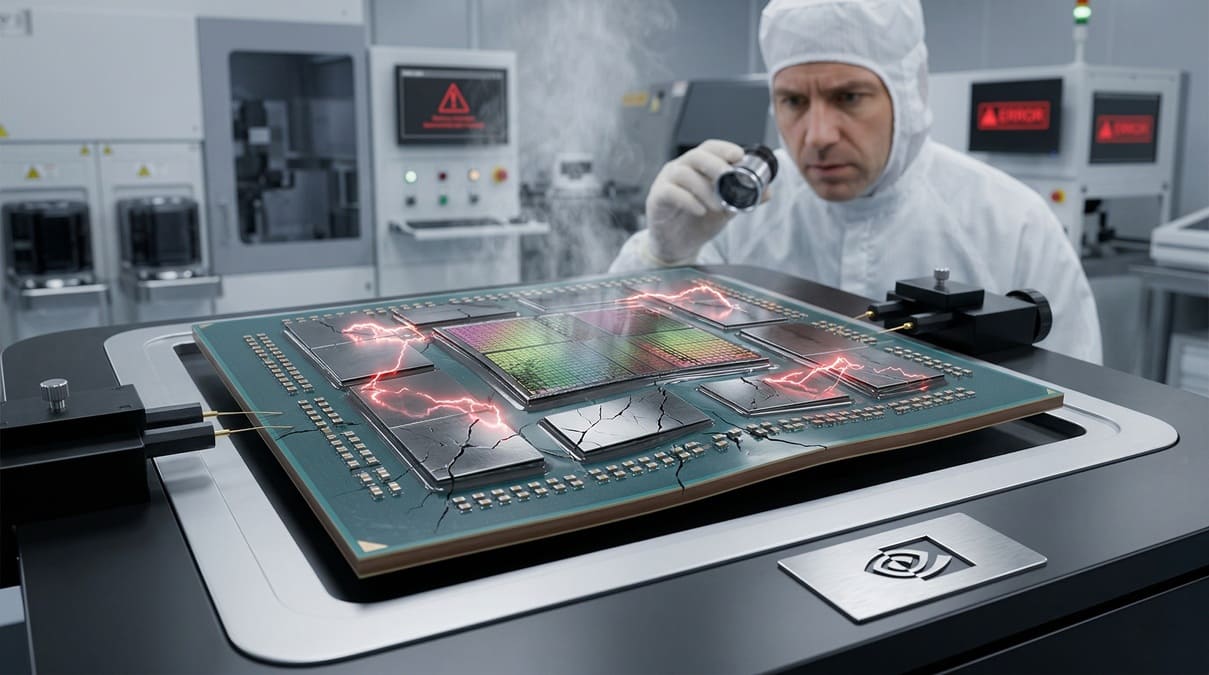 Este enfoque busca impulsar el rendimiento en aceleración de IA, pero introduce retos claros en gestión térmica, distribución de señal y estabilidad estructural. La combinación de más silicio de GPU y mayor cantidad de memoria dentro de un mismo paquete incrementa el riesgo de problemas mecánicos y eléctricos.