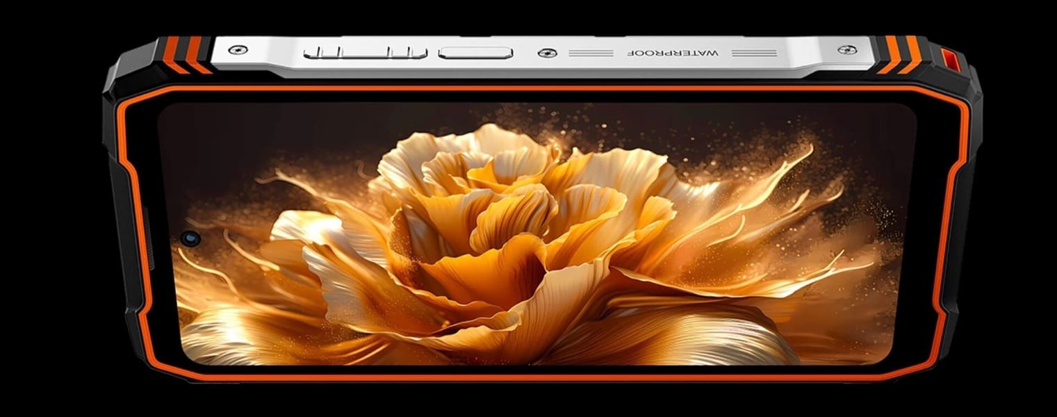 La carcasa, con certificación IP69K, garantiza resistencia al agua, polvo y caídas extremas, mientras que la parte superior incorpora dos linternas LED con una potencia combinada de 170 lúmenes, útiles en entornos oscuros o de trabajo al aire libre. En el lateral izquierdo se incluye un botón programable para accesos rápidos o funciones personalizadas.