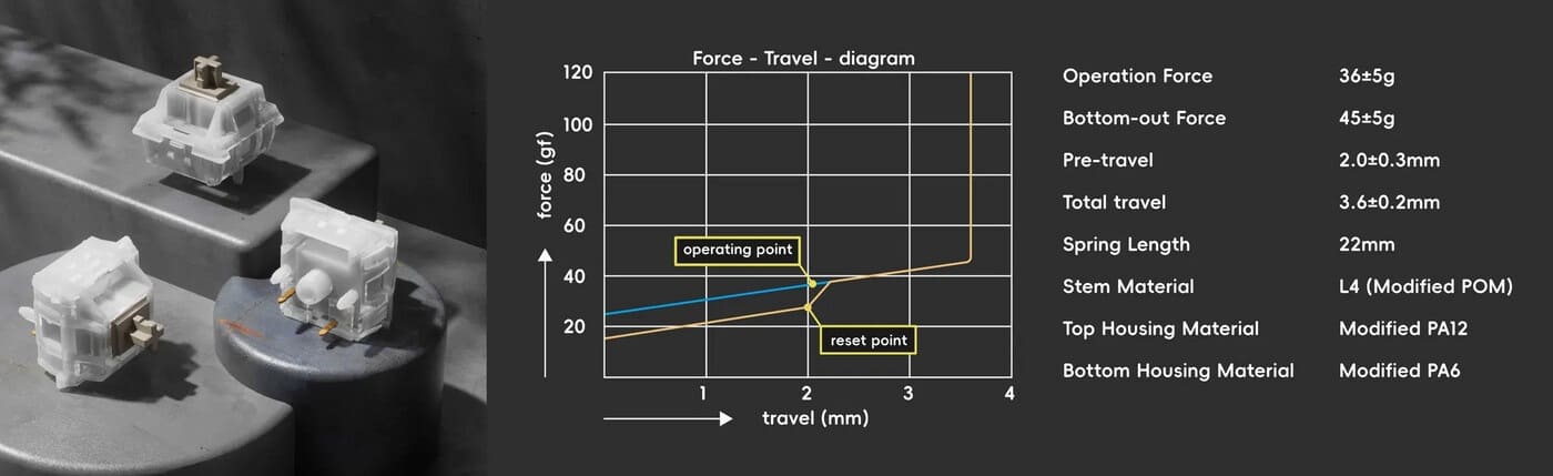 El QK65 MK3 estará disponible desde 199$ (~172€) en formato barebones kit, que incluye la carcasa, el PCB con la pantalla integrada, la placa seleccionada y los estabilizadores, sin keycaps ni switches. Para quienes adquieran un set de keycaps por 14$ (~12€), la marca incluye además 70 interruptores Rye de regalo, un incentivo atractivo teniendo en cuenta que un conjunto equivalente podría superar los 50$ (~43€) en el mercado.