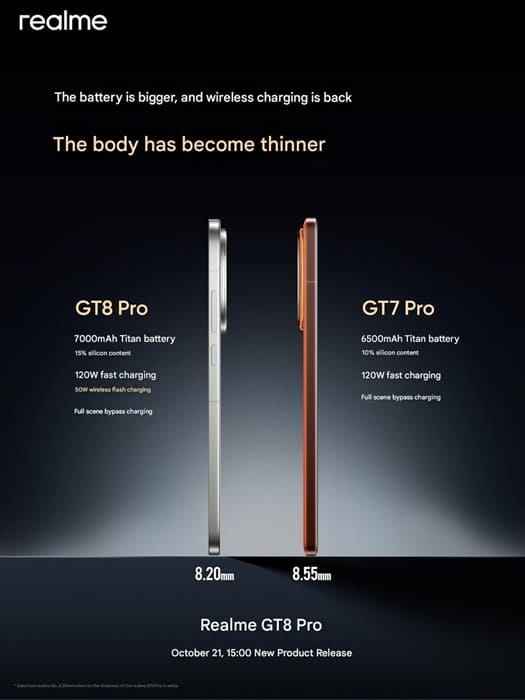 A pesar de tener un chasis más fino que el Realme GT 7 Pro, el nuevo modelo integra una batería de 7.000 mAh, 500 mAh más que su predecesor. Es compatible con carga rápida de 120W por cable y carga inalámbrica de hasta 50W, todo dentro de un cuerpo certificado IP69 que garantiza resistencia al polvo y al agua.