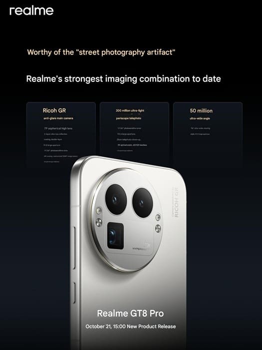 El vicepresidente de Realme ha revelado numerosos detalles del Realme GT 8 Pro en Weibo, adelantando parte de su ficha técnica antes de su presentación oficial el 21 de octubre. El nuevo buque insignia de la marca destacará por su colaboración con Ricoh GR, el procesador Snapdragon 8 Elite Gen 5, y un conjunto de mejoras notables en batería, pantalla y conectividad.