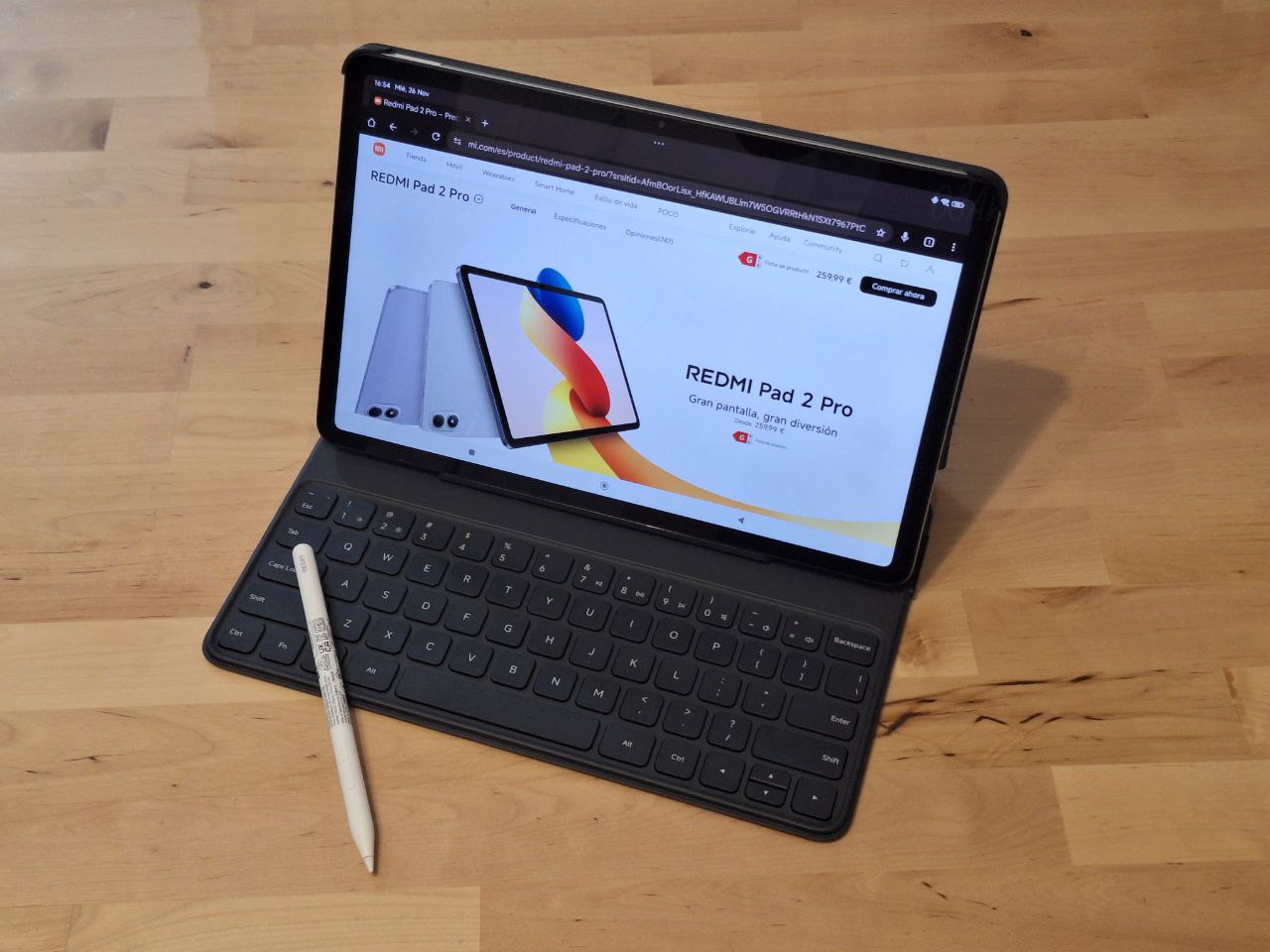 La Redmi Pad 2 Pro, acompañada de su funda con teclado y el lápiz inteligente oficial, es una tablet que destaca por su pantalla de 12,1 pulgadas con resolución 2,5K y tasa de refresco de 120 Hz, su batería de 12.000 mAh con carga rápida y su sistema de audio de cuatro altavoces con Dolby Atmos. Su rendimiento es adecuado para la mayoría de tareas, y los accesorios convierten al dispositivo en una opción más completa para productividad y creatividad. Es una propuesta recomendable para quienes buscan un dispositivo multimedia versátil, con buena autonomía y posibilidades de trabajo ligero, sin necesidad de gastar en gamas más altas.